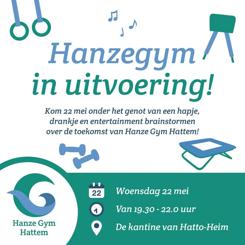 Op woensdagavond 22 mei houdt Hanze Gym Hattem de brainstormavond ‘Hanze Gym in Uitvoering’. Onder het genot van een hapje, drankje en entertainment gaan zoveel mogelijk leden en ouders brainstormen over de toekomst van de vereniging.