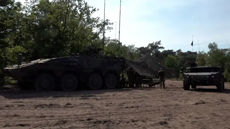 Na de korte uitleg over de spelregels stappen we in de auto, en brengt Maarten me naar de commandopost, achter op het schietterrein. “Van hieruit overzien we alles wat er gebeurt”, legt hij uit. “We communiceren hier met onze pelotons in het veld, Charlie en Delta. Die bestaan allebei uit drie pantserhouwitsers, en voeren verschillende oefeningen uit. Charlie is bijvoorbeeld dynamisch aan het schieten. Die rijden dus een stuk en moeten dan schieten op een doel verderop. De houwitsers van Delta staan juist verdekt opgesteld, en krijgen dan de opdracht om uit hun schuilplaats te komen en ook op een doelwit te schieten.” De tekst gaat verder onder de video.