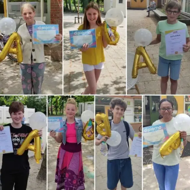 Rebecca (Bariton), Rogier (slagwerk) en Stephanie (slagwerk) behaalden hun A-diploma. Lynn (altsaxofoon), Kaat (trompet), Nivitha (bugel) en Igor (slagwerk) behaalden hun B-diploma.
