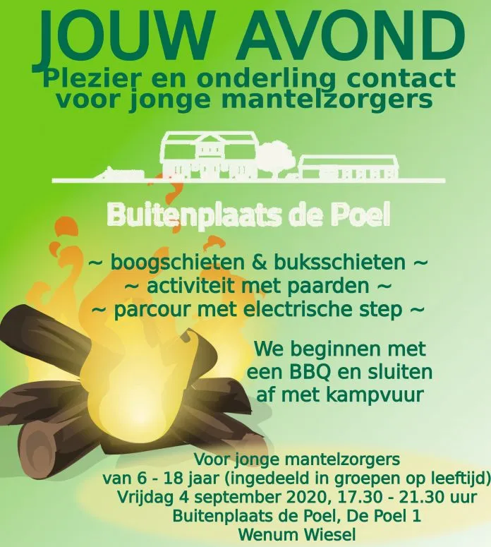 Jonge mantelzorgers uit Hattem zijn op vrijdag 4 september van harte welkom bij Buitenplaats de Poel in Wenum Wiesel. Er is voor hen een te gekke avond georganiseerd vol met activiteiten en gezelligheid. Aanmelding voor deze funavond kan via de website van www.swhattem.nl. Voor vragen kan je ook contact opnemen via de website van swhattem.