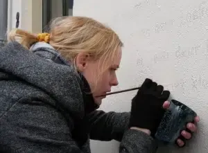 Twee vierdejaars studenten van de opleiding Decoratie/Restauratie van het Cibap renoveren de muurgedichten in Hattem. Voor de 20-jarigen Roos Warnders uit Meppel en Anne Will Barneveld uit Kampen is deze restauratieklus de eerste opdracht die zij buiten schoolopdrachten doen en dat vinden zij maar wat leuk.