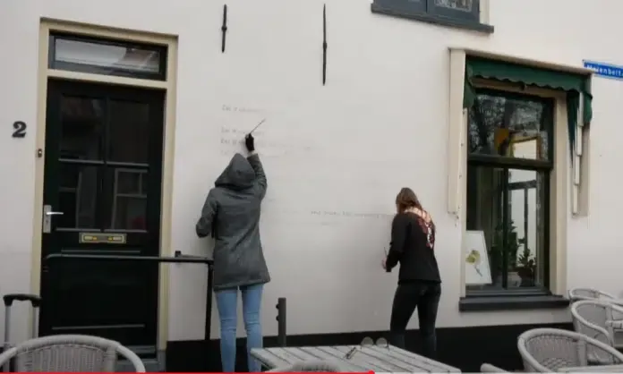 Twee vierdejaars studenten van de opleiding Decoratie/Restauratie van het Cibap renoveren de muurgedichten in Hattem. Voor de 20-jarigen Roos Warnders uit Meppel en Anne Will Barneveld uit Kampen is deze restauratieklus de eerste opdracht die zij buiten schoolopdrachten doen en dat vinden zij maar wat leuk.