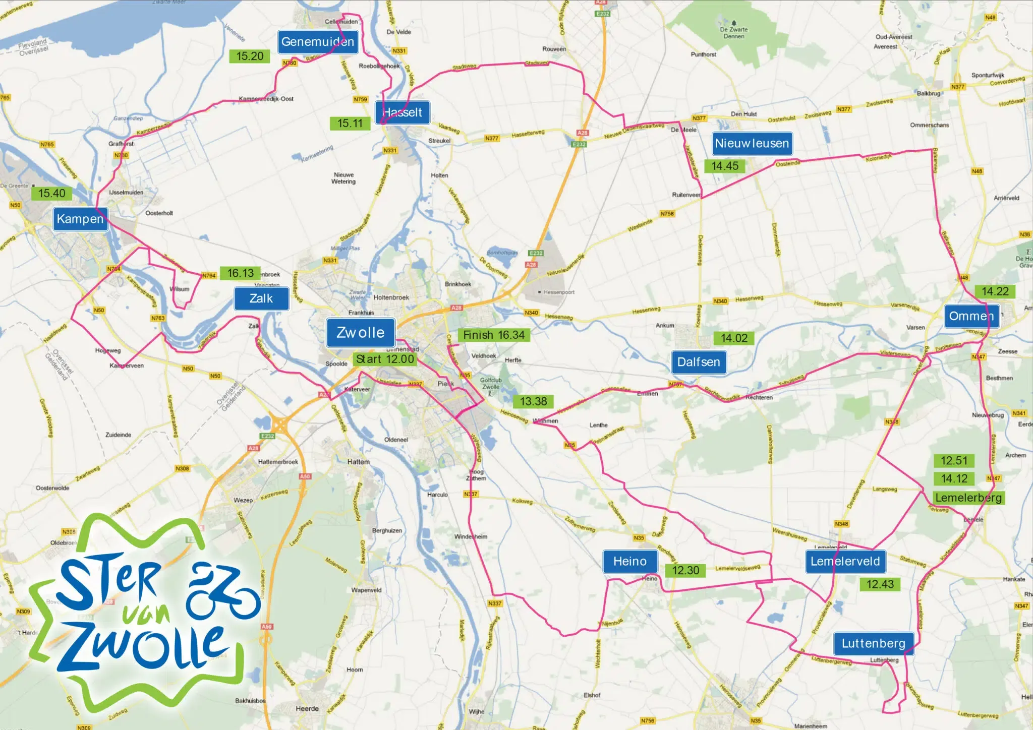 De Ster van Zwolle gaat ook kort over het grondgebied van Hattem, waarna het peloton op weg gaat naar de finish op de Ceintuurbaan, ter hoogte van de Isala Klinieken.