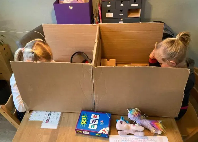 Leonie van den Berg heeft een creatieve oplossing zodat haar dochters geconcentreerd kunnen leren. “Net als bij de meeste gezinnen is ook hier het thuisonderwijs een dagelijks horrorverhaal. Met een peuter, kleuter en kind in groep 3 is er altijd wel iemand die iets nodig heeft, gefrustreerd is, geen zin heeft, eten wil, of loopt te gillen om weet ik veel. Gekmakend is het. Ik ben zelf bovenbouw juf en met elke dag die voorbij gaat groeit mijn respect voor de onderbouw-collega’s alleen maar. HOE DAN?!