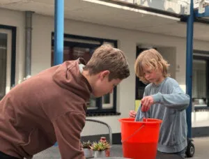 ’s Middags waren de leden van Ontwaakt in de Hof van Blom in het kader van NLDoet. Met de bewoners maakten ze het atrium voorjaarsklaar.