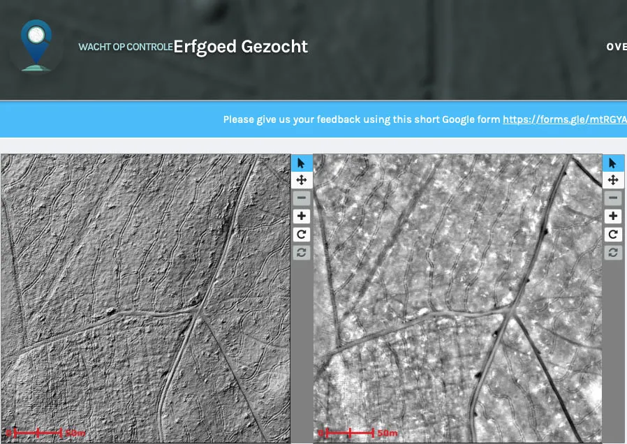 Er worden twee verschillende visualisaties getoond van dezelfde hoogtegegevens en hierop kan je alle potentiële grafheuvels, houtskoolmeilers en Celtic fields die je kunt vinden markeren. Er zijn nog grote gebieden onontdekt en het is zomaar mogelijk dat je een nieuwe grafheuvel ontdekt.