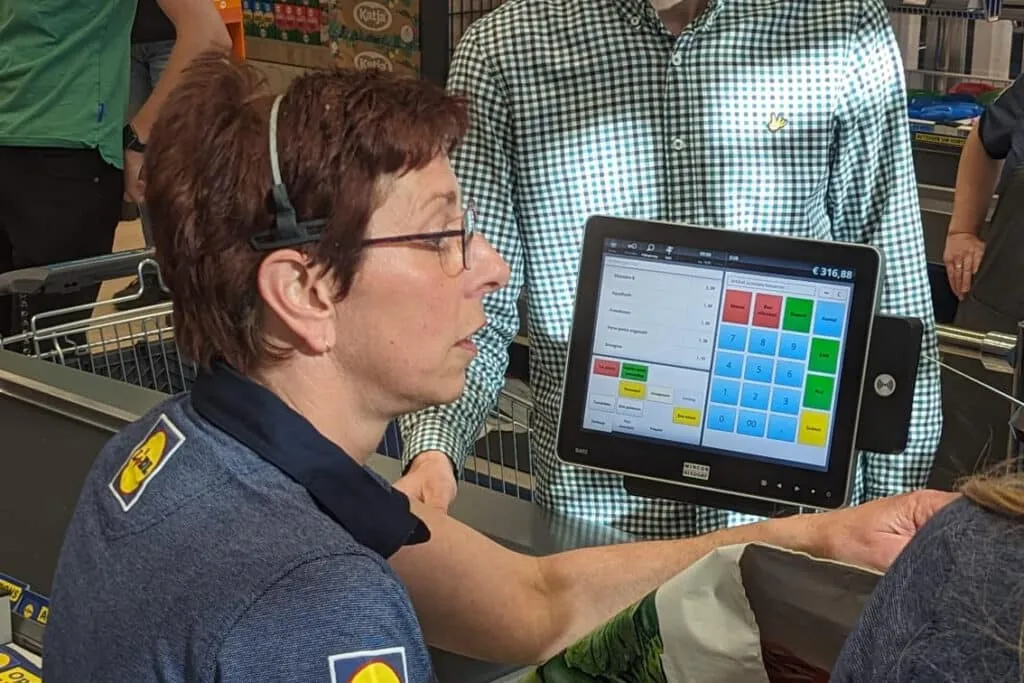 Jennifer is gehuld in een LIDL tenue. Samen met een collega verdeelt zij de loten die kans geven op één minuut gratis shoppen. ‘LIDL Hattem wordt straks mijn nieuwe werkplek en daar heb ik erg veel zin in. Ik ben op allerlei soorten werk in te zetten, maar het meest geniet ik toch wel van de bakkerij. Ik ben gek op de geur van vers brood en zie dat de klanten daar ook blij van worden. Er geen dag voorbij zonder dat ik met een vers broodje de zaak even uitloop.’ Met een glimlach:’Wel netjes afgerekend natuurlijk.’