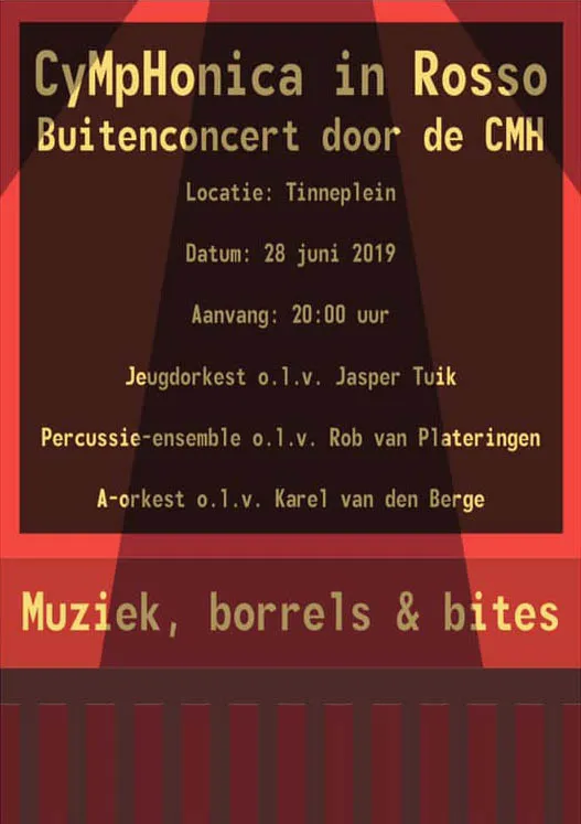 Christelijke Muziekvereniging Hattem (CMH) geeft onder de naam Symphonica in Rosso een openluchtconcert op het Tinneplein. Voor het concert is een speciaal programma ingestudeerd met muziek voor elke generatie; van Queen tot Duncan Lawrence. De uitvoering staat deze avond onder leiding van gastdirigent Karel van den Berge.