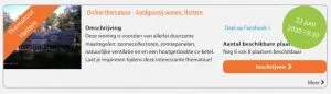 Wie interesse heeft in duurzaam wonen, krijgt maandagavond 22 juni de unieke kans om via videoverbinding binnen te kijken in een duurzaam huis. Huiseigenaar Theo te Winkel geeft dan uitleg over de duurzame maatregelen die hij toepaste in zijn woning in Hattem, zoals de isolatie, zonnecollectoren en het gebruik van regenwater voor het spoelen van het toilet. Mensen die graag deelnemen, kunnen zich aanmelden via de website van de Nationale Duurzame Huizen Route.