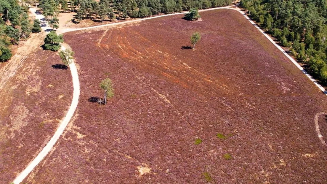 Dat de paarse pracht wat minder prachtig is, heeft allemaal te maken met de enorme droogte. “Het gaat vooral om de stukken die vol in de zon staan die bruin worden. Andere jaren was het ook weleens zo droog, maar toen viel er op cruciale momenten toch regen. Vorig jaar was dat ook zo.”