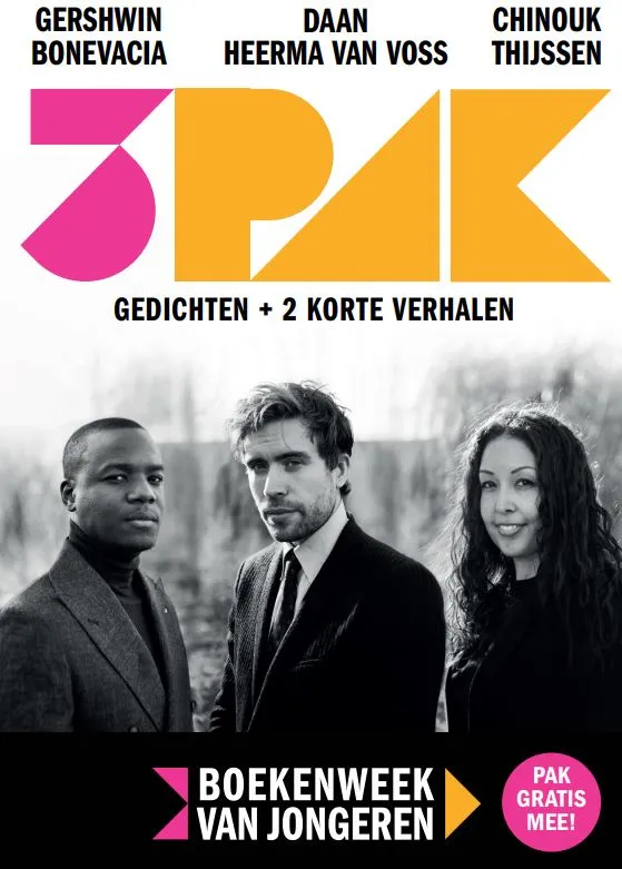 Voor alle jongeren is 3PAK gratis af te halen in de bibliotheekvestigingen. 3PAK is een geschenkbundel met korte verhalen. Deze zijn dit jaar geschreven door Chinouk Thijssen, Daan Heerma van Voss en Gershwin Bonevacia. De voorraad is beperkt, op = op.