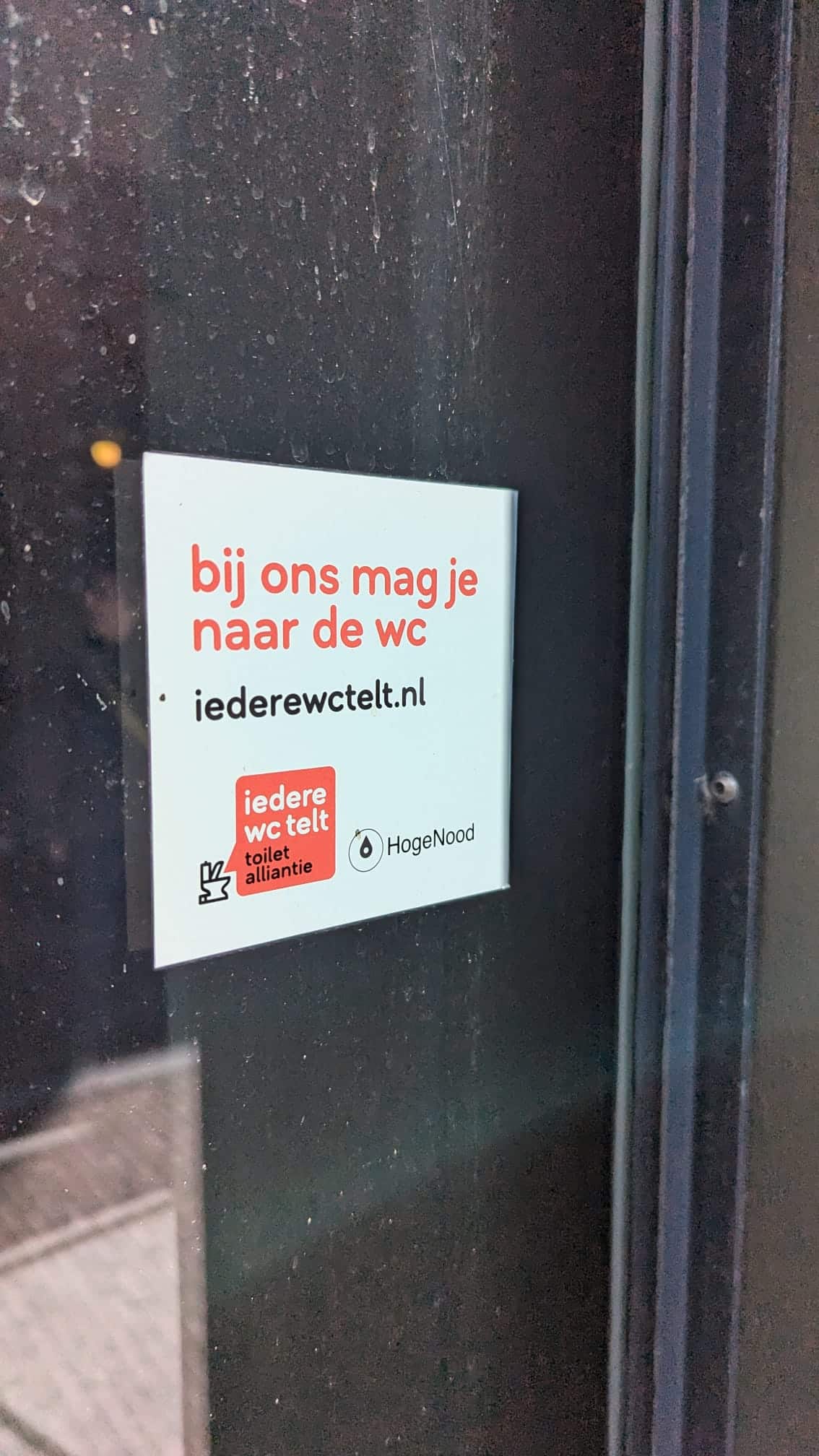 Sommige ondernemers hebben de plakker op de winkeldeur geplaatst. Als deze permanent openstaat, is de aanduiding lastig te vinden, vooral wanneer er ook nog spullen voor staan uitgestald, zodat men wellicht de mogelijkheid van een gratis stoelgang laat varen.