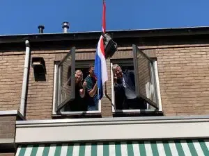 Mirte heeft samen met de minister en haar mentor taart gegeten. Daarna staken ze gedrieën de vlag uit.