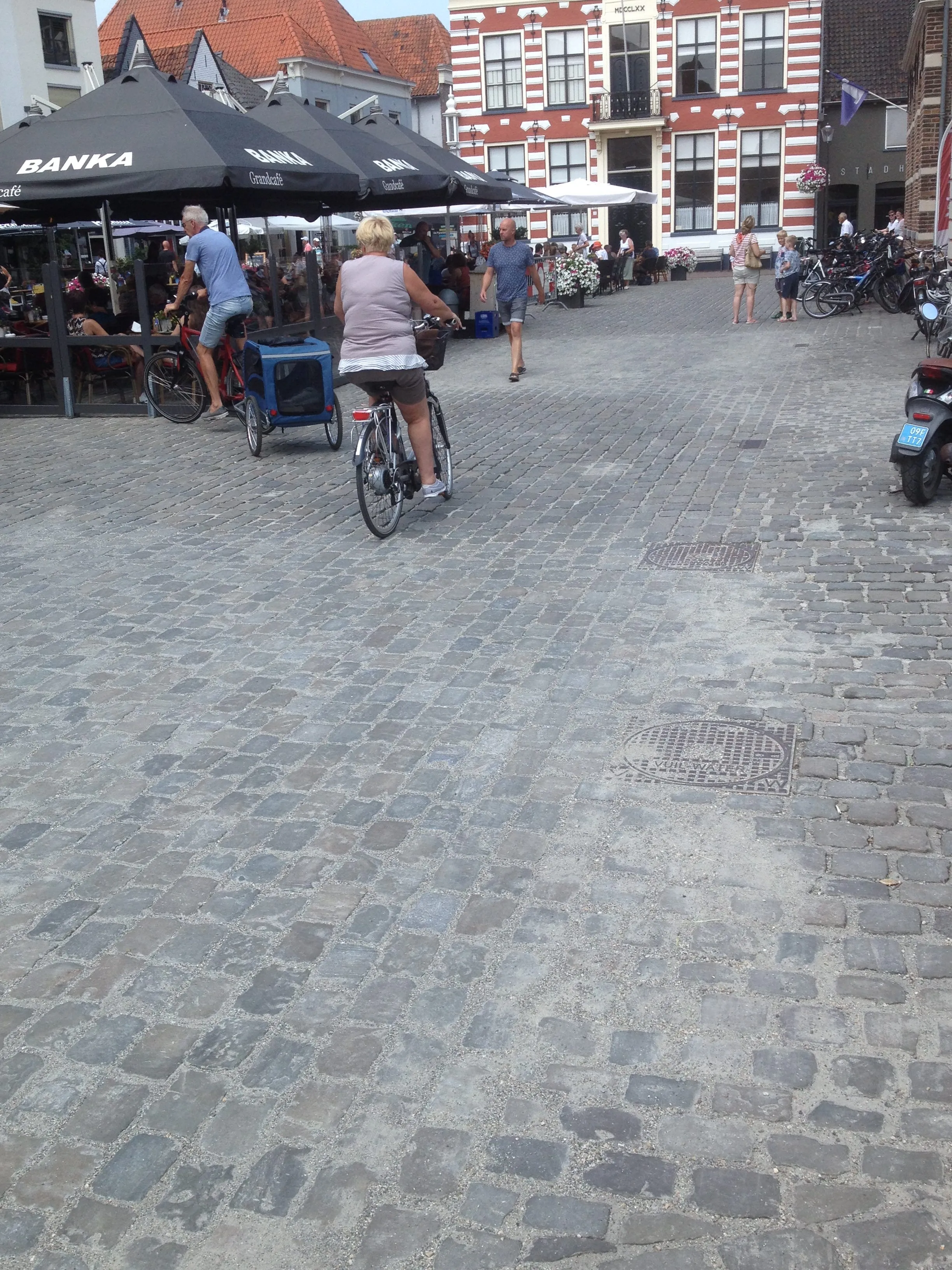 De gemeente heeft vier proefvlakken aangelegd op de Markt om te onderzoeken hoe de beloopbaarheid kan worden verbeterd. De vier vlakken zijn aangelegd met de bestaande stenen, maar met verschillend voegmateriaal en een verschil in breedte van de voegen.