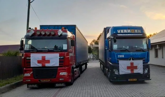 Zaterdagmorgen 14 september om 05.00 uur vertrokken Dick Groeneveld en Jaap Prijs naar Oekraïne, samen met (broer) Johan Groeneveld en zijn vrouw Roelie in de tweede vrachtwagen. De vrachtwagens zijn geladen met hulpgoederen voor Oekraïne. Vandaag, 16 september, zijn ze de grens overgestoken.