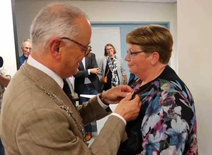 Erna Blok-Hulsbergen is benoemd tot Lid in de Orde van Oranje Nassau. Burgemeester Jan Willem Wiggers reikte vanavond de bij de onderscheiding behorende versierselen uit tijdens de jaarlijkse vrijwilligersbijeenkomst van het Rode Kruis Hattem-Wapenveld in het Rode Kruis-gebouw.