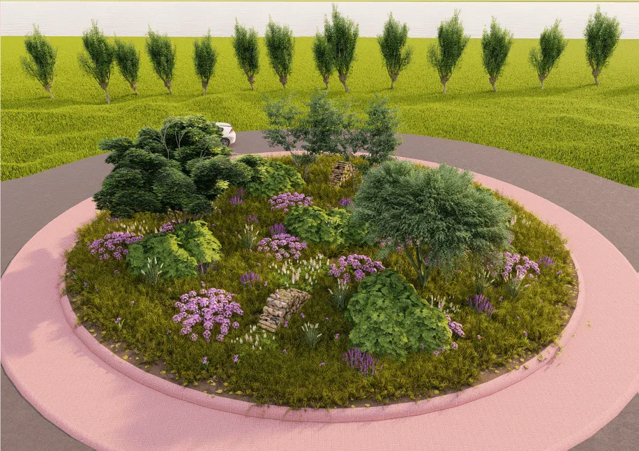 Aan het ontwerp van de rotonde liggen lokale invloeden invloeden aan de basis. We zijn in Hattem onderdeel van de Veluwe en hebben een rijke historie met en dankzij de IJssel. Daarom hebben Stefs Tuinen en Poot Tuincentrum daar rekening mee gehouden in het ontwerp. Het organische lijnenspel, verschillende grassen en kruiden representeren de IJssel. Het gebruik van rondhout, groenblijvende heesters en verschillende meerstammige heesters laten ook de Veluwe herleven op de rotonde. Binnenkort zal Hattem mensen die de stad binnenrijden extra mooi begroeten.