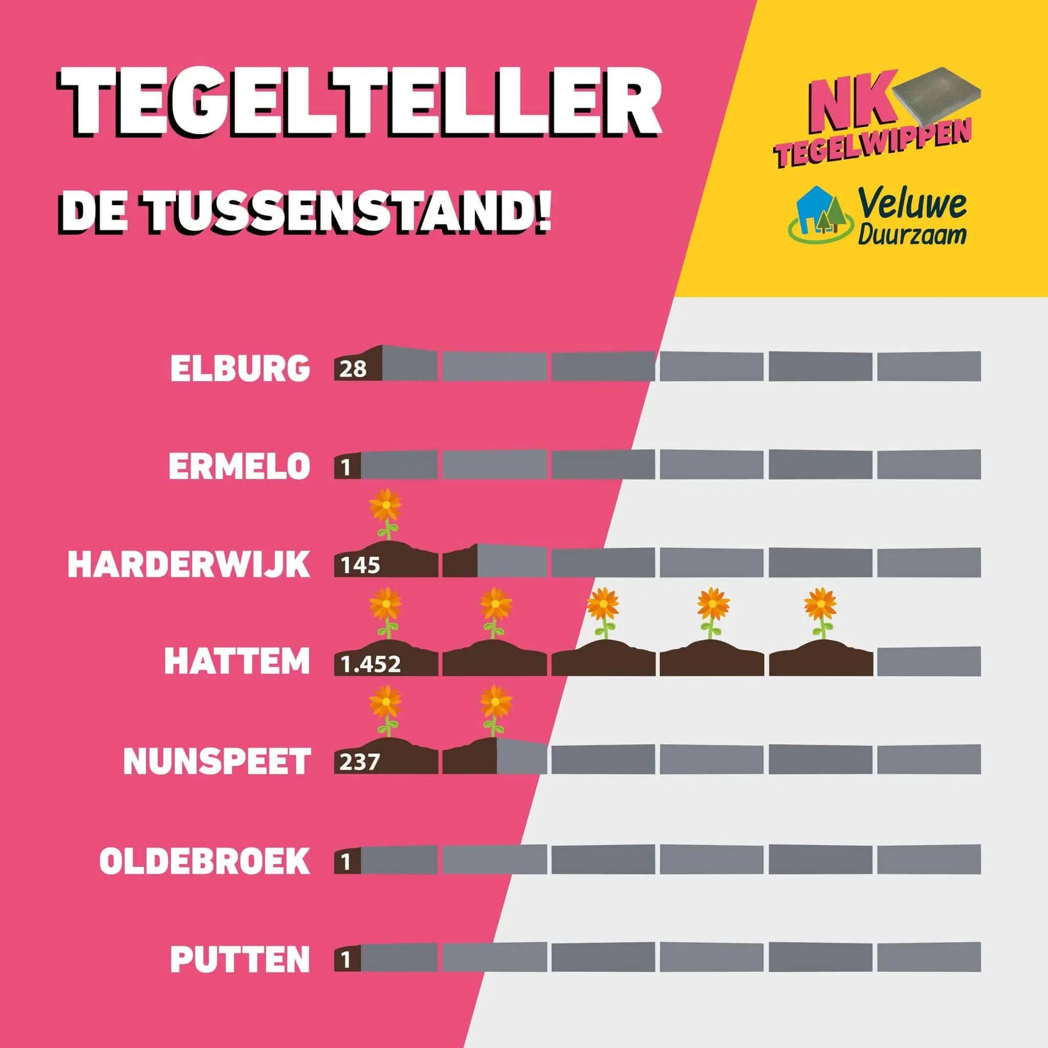 Vergeet niet om jouw tegels ook aan te melden op nk-tegelwippen.nl, zo kan iedereen zien hoe bewust Hattemers bezig zijn met groen. Op de Noord-Veluwe zijn in Hattem tot nu toe de meeste tegels gewipt.