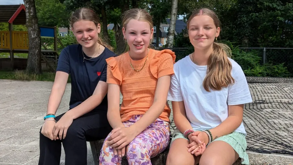 Lieke, Myrthe en Charlotte hebben een wat rustiger plekje opgezocht, achter de school. ‘We vinden het wel leuk dat het nu voorbij is.’ Op mijn vraag wat de allerleukste ervaring tot nu toe is, klinkt opnieuw enthousiast: ‘De musical! Maar het kamp in groep 7 was ook supergezellig. Toen moesten we met zijn allen naar Doornspijk fietsen.’