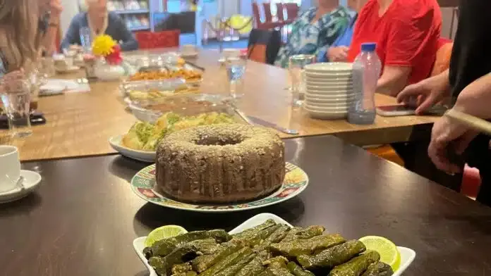 Dinsdag 16 juli was het de laatste keer voor de zomervakantie dat de bezoekers en vrijwilligers rond de grote tafel in de Marke zaten voor een praatje en koffie. Dit keer was de tafel gevuld met allerlei lekkere hapjes en taarten. Het was een smaakvolle internationale verwennerij. De mensen die wekelijks komen om Nederlands te oefenen, bleken ware keukenprinsessen.