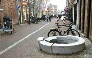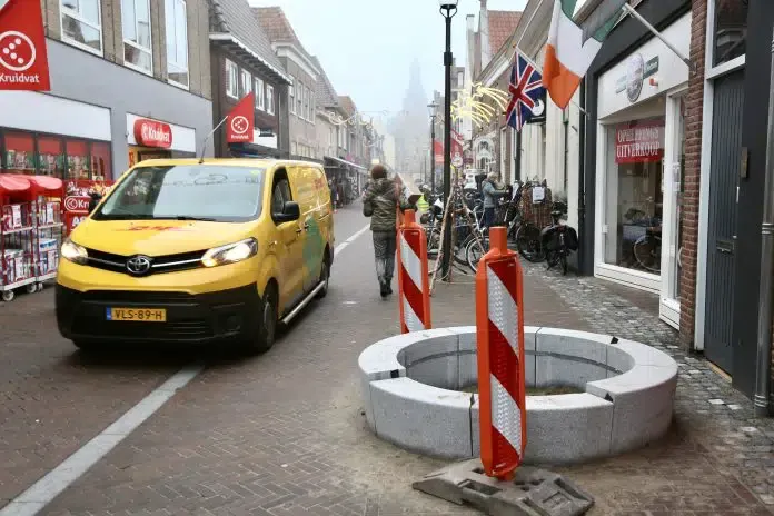 “Daarbij is de grote ladderwagen van het brandweerkorps Zwolle als maximale maat genomen. Deze kan met de komst van de bakken gewoon door de Kerkstraat rijden. In de Kerkstraat moet -als onderdeel van het woonerf- stapvoets worden gereden.”