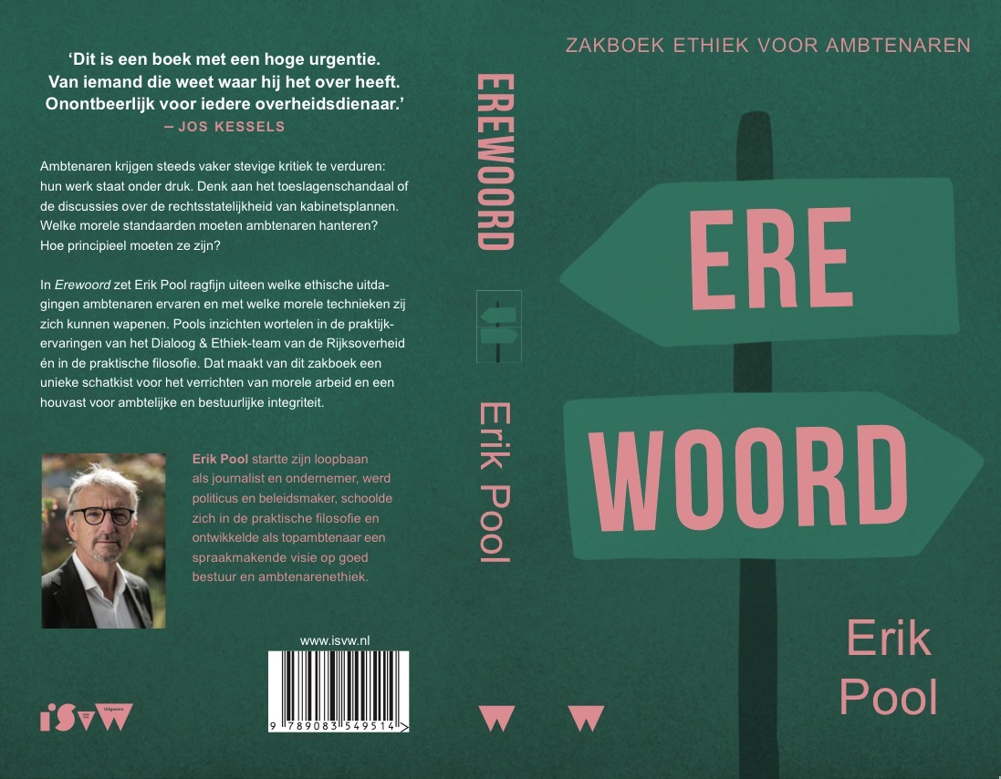 Pools nieuwste boek Erewoord, dat in november is verschenen bij de uitgeverij van de Internationale School voor Wijsbegeerte, laat zien wat ambtenaren kunnen doen om op grond van hun ambtseed de democratie en rechtsstaat overeind te houden. In dit ‘zakboek ethiek voor ambtenaren’ beschrijft Pool zijn Haagse ervaringen en de kernbegrippen van moreel ambtelijk vakmanschap.