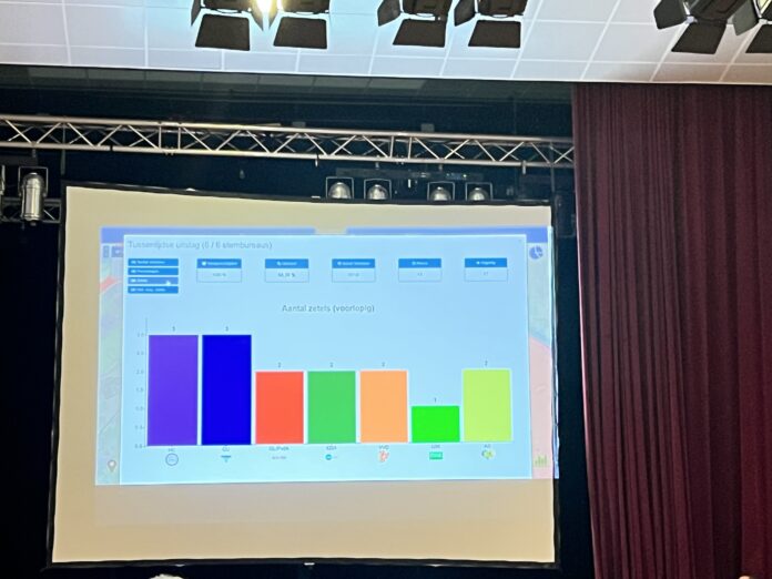 ChristenUnie 1315 stemmen – 3 zetels (2022 1597 stemmen, 4 zetels -5,6%)