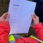 Hij liet een Jodenster zien. ‘Ik heb een orginele Jodenster thuis, maar ik heb er een nagemaakt om te kunnen laten zien, omdat de andere zo langzamerhand heel kwetsbaar is. Kun je je voorstellen dat mensen in Hattem ermee op straat liepen?