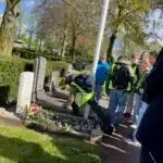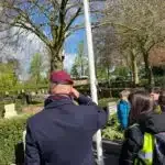 Op 18 april zaten in het stadhuis niet alleen de kinderen, maar ook leden van het 4 en 5 comité Hattem. Ze stelden zich aan de kinderen voor. Bert Wijnhoud is veteraan. Hij is vier keer naar Afghanistan uitgezonden geweest. Vandaag was hij ceremoniemeester vanaf het moment dat iedereen naar buiten ging, op weg naar de gedenkstenen, de synagoge, de ‘plek van bevrijding’ achter de Dijkpoort, en op de begraafplaats bij het graf van Austin.