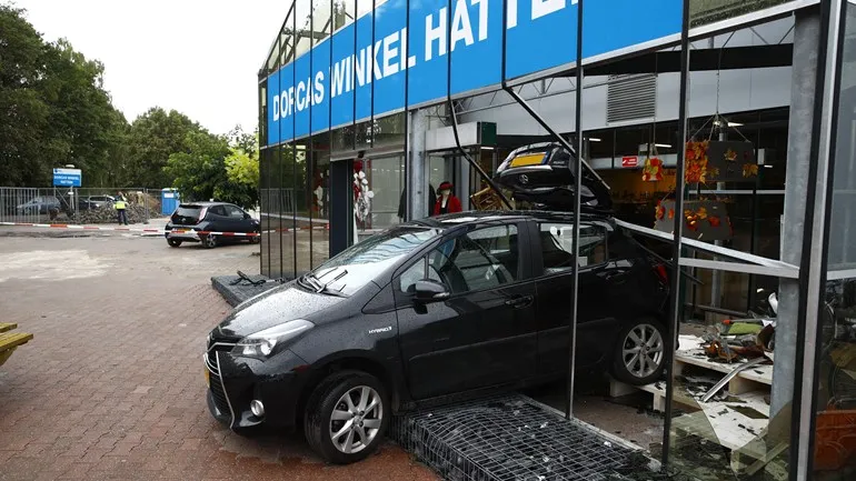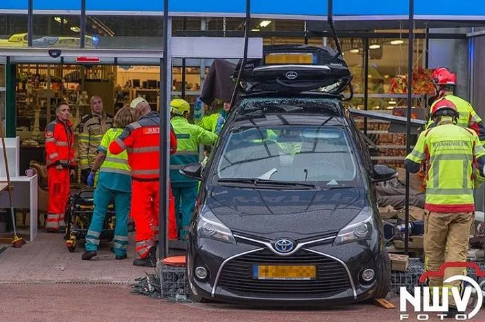 De auto reed achteruit de winkel in tweedehandsspullen in. Dat veroorzaakte flink wat schrik in de winkel. Een traumahelikopter, vier ambulances en de brandweer waren aanwezig.