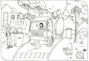 Hieronder vind je verschillende kleurplaten. Print er eentje uit en kleur deze zo mooi als je kunt. Plak hem vervolgens op het raam. Zo kan de chauffeur van de vuilnisauto hem goed zien! De kleurplaten kun je ook los downloaden, maar ook als geheel in een echt Kleurplatenboek.