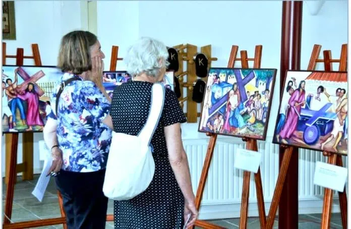 Reina Folkerts, de initiator van de tentoonstelling, is blij met de mogelijkheid om enkele kruiswegstaties ten toon te stellen: ‘Mijn belangstelling voor de kruisweg wil ik graag delen met anderen, ter inspiratie en ter bemoediging’.