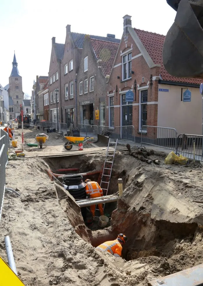 Het stadscentrum van Hattem ligt open vanwege riolerings- en bestratingswerkzaamheden.