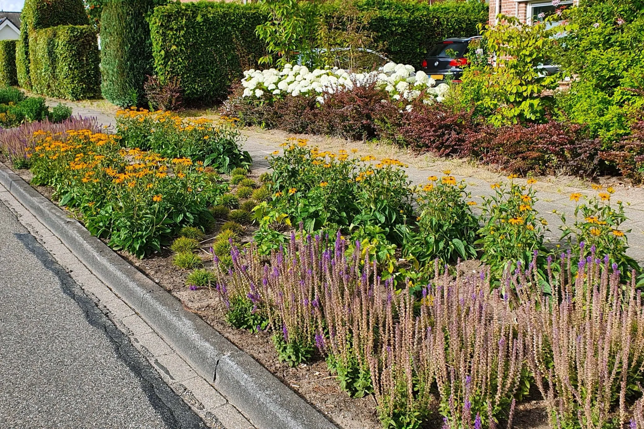 In plaats van de bijna 40 bomen zijn er 12 nieuwe bomen teruggeplant. Daarnaast zijn er vlinderstruiken, rozen, asters, salvia en sedum in de plantvakken gezet. Deze struiken en planten staan nu volop in bloei en zorgen ervoor dat de Gaegsberghweg weer een mooie, kleurige straat is.