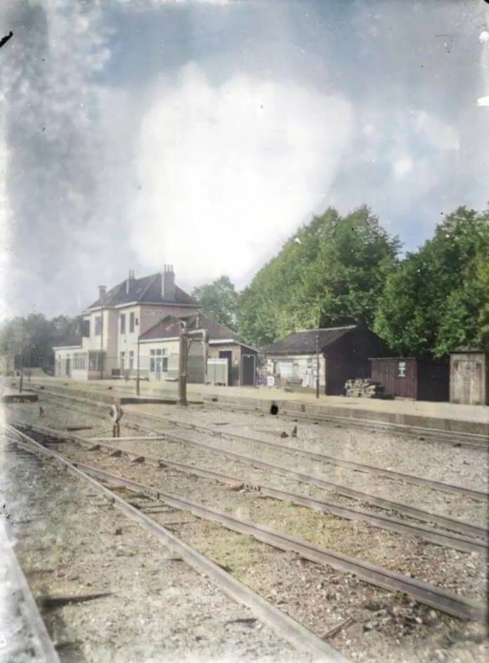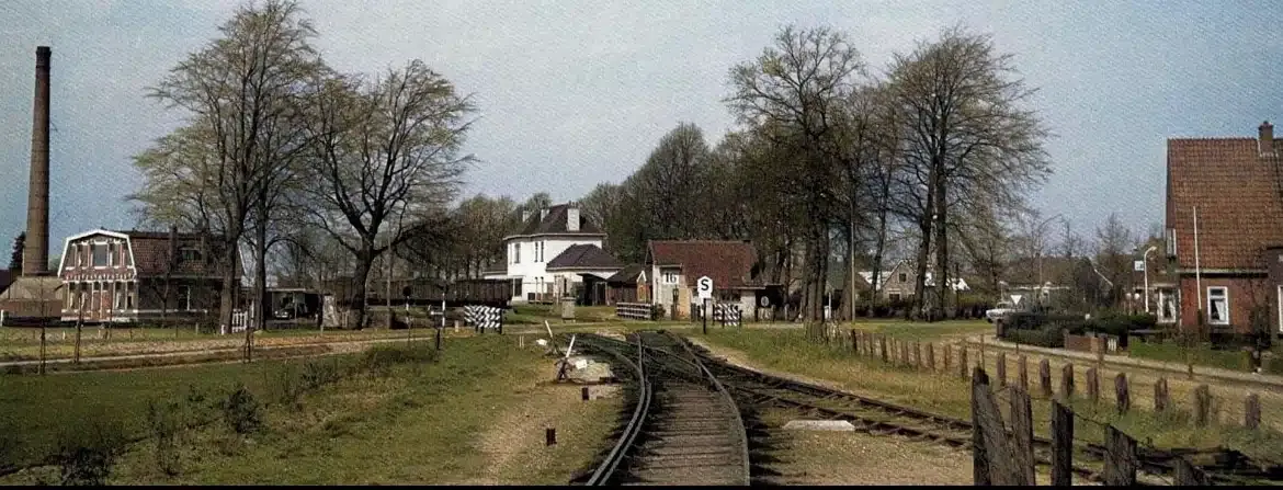 ‘Super mooi, links het spoor naar Wapenveld en rechts naar de emaillefabriek. De wissels werden nog met de hand bediend. Gerrit Westerhof, uit de Korte Kerstraat, sprong dan uit ‘de sikke’ en zette het wissel om.’