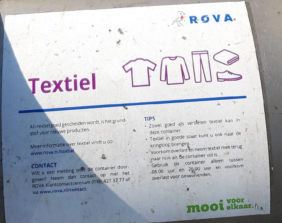 Dat kan bijvoorbeeld in de textielcontainer bij Albert Heijn of aan de Distelhoeve. Doe de zak niet te vol (een vuilniszak is echt te groot). Is de container vol? Zet de zak er dan niet naast! Dit geeft rommel en bij een regenbui wordt alles nat.