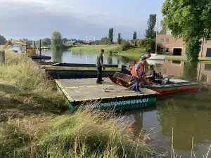 Nadat de (bigbagd) zijn gelost als Kluwer aarde kunnen de bewoners oversteken bij het oeverwater.