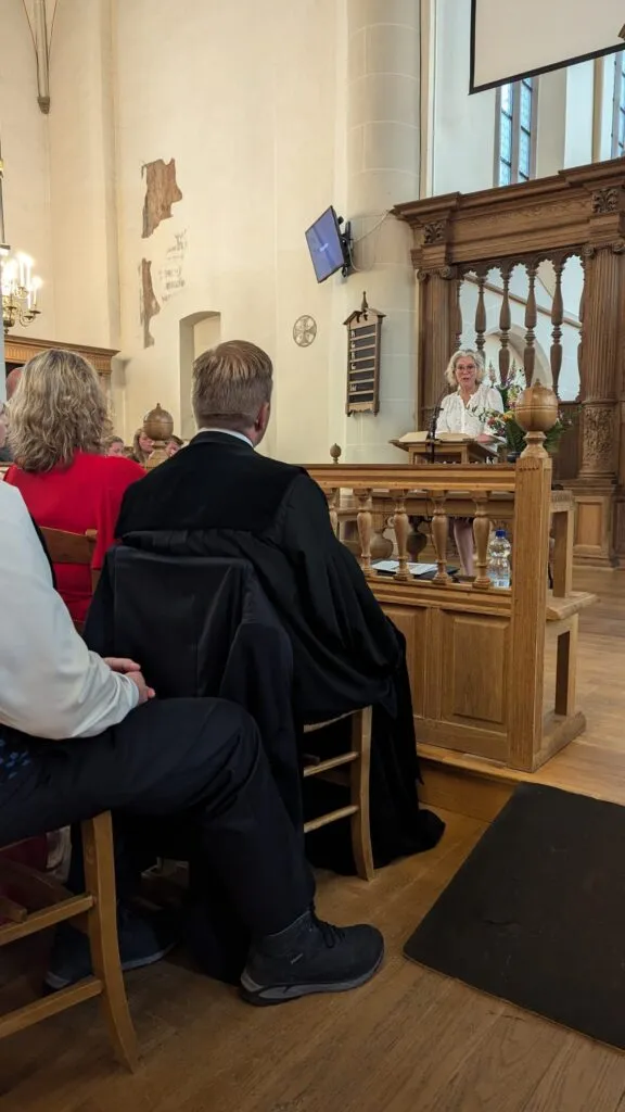 De predikant en zijn gezin werden na de dienst onder meer toegesproken door burgemeester Marleen Sanderse. Zij benadrukte het belang van een goede samenwerking tussen de kerken en de burgerlijke overheid. Even daarna waren de kinderen van de kindernevendienst aan de beurt die enkele welkomstcadeautjes aanboden.