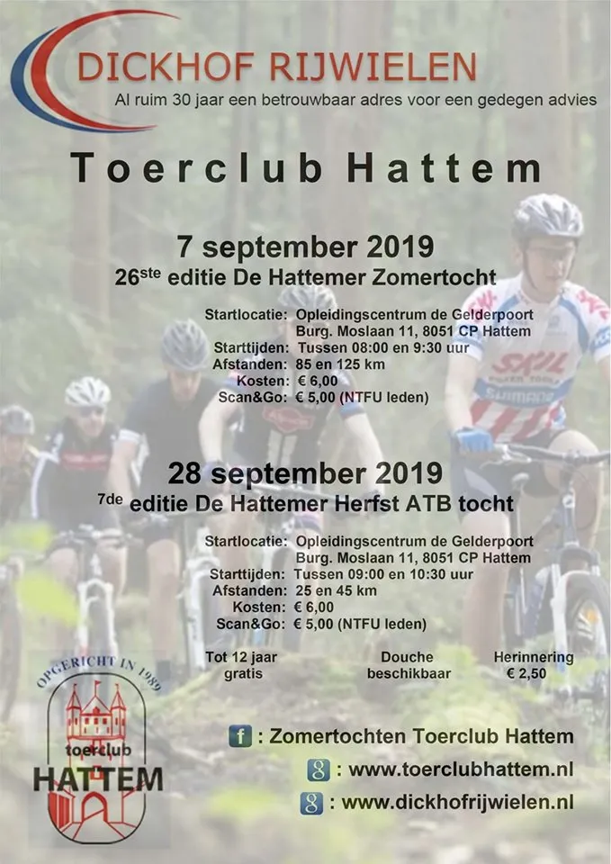 Toerclub Hattem houdt voor de 26e keer de Rabo Hattemer Zomer Toertocht. Het evenement is op zaterdag 7 september.