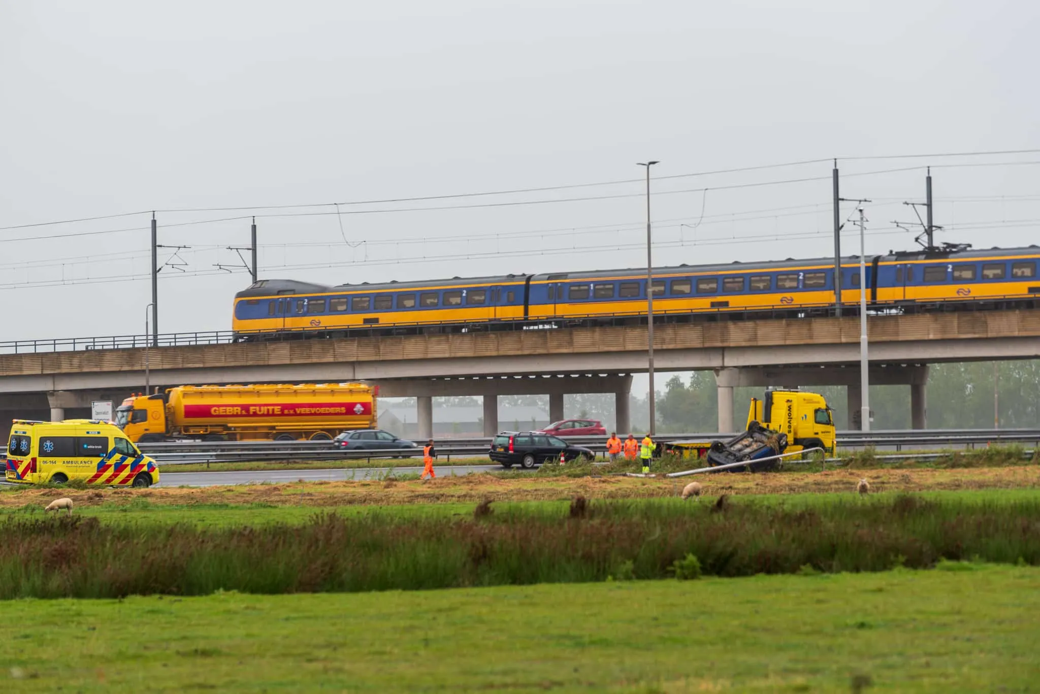 Op de A50 is donderdag een auto over de kop geslagen bij een eenzijdig ongeval. De bestuurder raakte gewond en is per ambulance naar het Isala ziekenhuis gebracht.