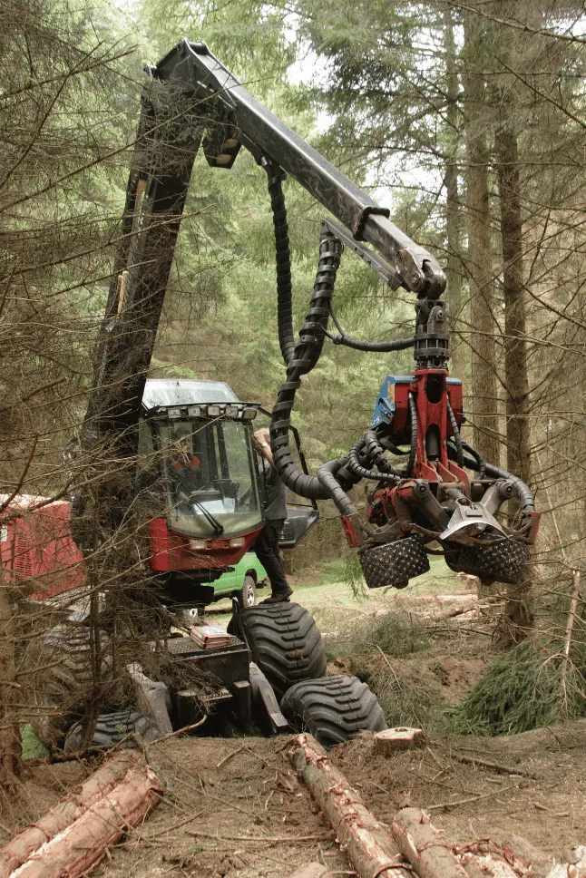 Het vellen van de bomen gebeurt door een harvester. Voorafgaand en tijdens de dunning wordt er een flora en fauna check uitgevoerd. Hierbij inventariseren we in het bos de dieren en planten die er leven. Voor de start wordt nauwkeurig in kaart gebracht of er bijvoorbeeld dassenburchten of broedbomen van roofvogels aanwezig zijn in het werkgebied. Als die er zijn, nemen we maatregelen om deze te beschermen. Deze plekken met de juiste ruimte er omheen worden uitgezonderd van de houtoogst en voorzien van een markering door middel van lint. Na het boswerk liggen er stapels hout langs de paden. Op labels valt te lezen waar dit hout naar toe gaat.