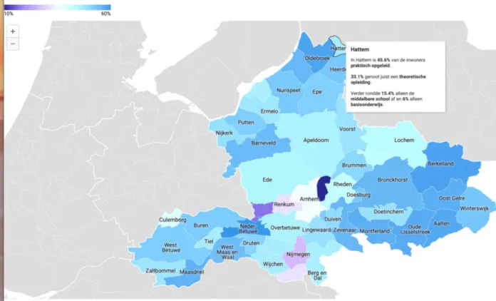 In Nederland is er steeds meer waardering voor praktische beroepen, die cruciaal zijn voor sectoren zoals bouw, zorg en energie. Uit een analyse van CBS-data door cvster.nl blijkt dat landelijk zo’n 42% van de inwoners een mbo-diploma heeft. In Gelderland ligt dit aandeel hoger, namelijk op 44,3%. In Hattem is 45,6% van de inwoners praktisch opgeleid en 33,1% genoot een theoretische opleiding.