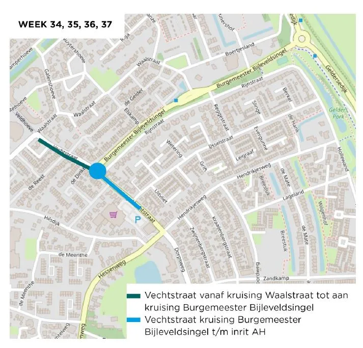 ►Vechtstraat tussen Waalstraat en Burgemeester Bijleveldsingel afgesloten