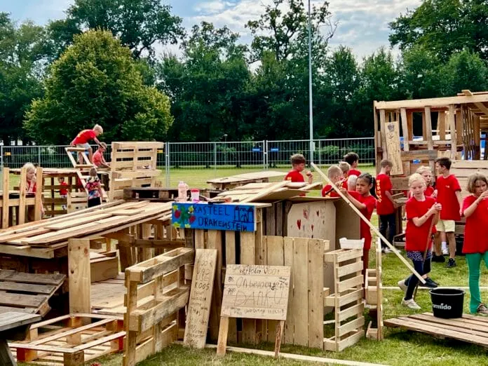 Frieke Haffmans wordt erbij geroepen. Menig Hattemer kent haar van de kinderboerderij ’t Dijkweitje. “Eigenlijk is het begonnen met het idee dat kinderen die niet op vakantie gaan, ook een verhaal hebben te vertellen als ze weer naar school gaan. We denken dat we niet al die kinderen bereiken, maar dankzij het weekblad De Schaapskooi lezen veel mensen over het Bouwdorp. Los daarvan, het is leuk om alle kinderen zo lekker bezig te zien. Het is voor iedereen leuk.’