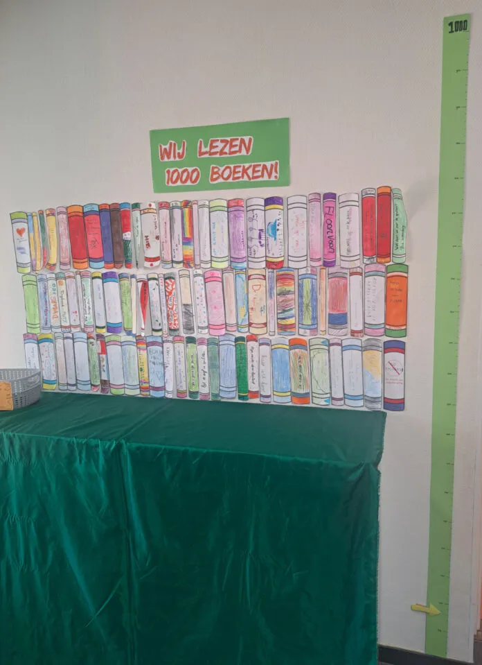 ‘Het doel is om tot aan de zomervakantie met elkaar duizend boeken te lezen. Duizend werelden die we met elkaar kunnen ontdekken. We zijn nu drie weken bezig en hebben met elkaar al negentig boeken gelezen.’