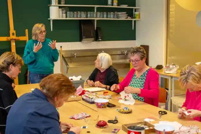 Alle deelnemers gaan in een workshop van twee uur aan de slag onder leiding van Herma de Ruiter die als zelfstandig textielkunstenaar over de hele wereld workshops geeft. De Ruiter is bekend vanwege haar modulaire textiel vierkanten/blokken. Momenteel geeft ze met veel enthousiasme lessen Textiellab bij Cultuurplein in Heerde en Wapenveld aan een groep vrouwen met gemengde etnische en sociale achtergrond. Als onderdeel van het taalproject Ik TAAL met jou worden verschillende kunstdisciplines aan TAAL verbonden.