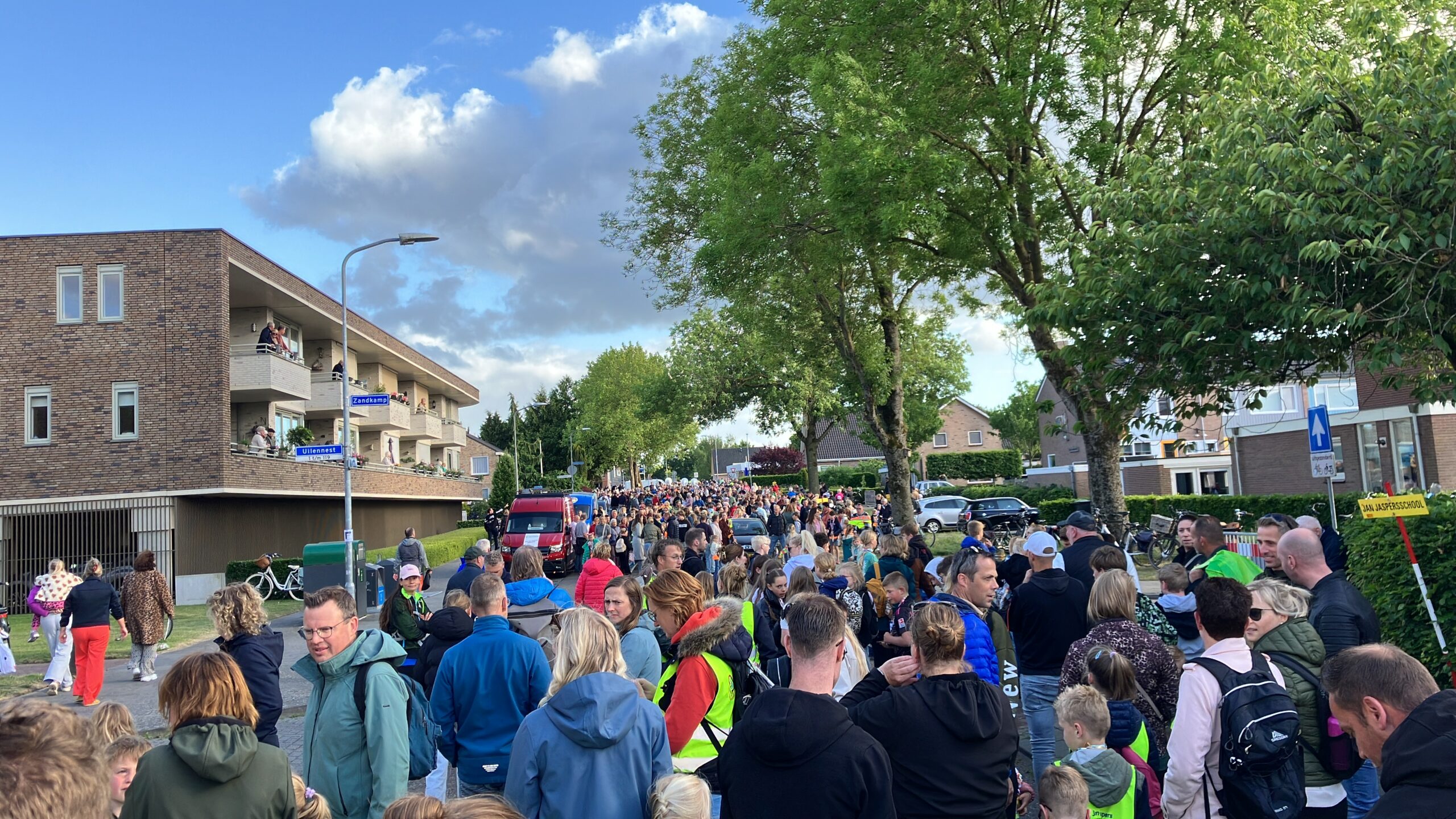 Gelukkig was het een schril contrast met de laatste avond van het vorige jaar. Toen de regen rond kwart over vijf ’s avonds zich nog even van zich liet dacht menigeen terug aan het afgelopen jaar. Toen barstte de regen en een flinke onweersbui los, waardoor het defilé afgelast werd. Gelukkig was het dit jaar een fijne editie, waar ouders, familie, leerkrachten en andere belangstellenden gezellig langs de kant stonden voor de laatste loodjes.