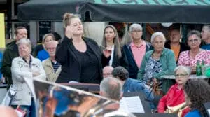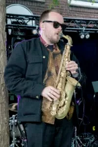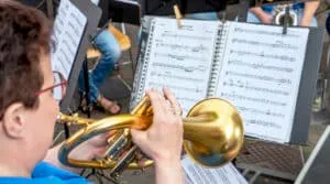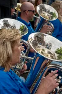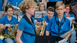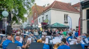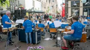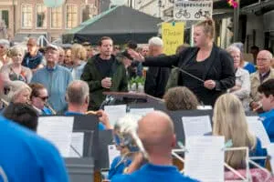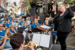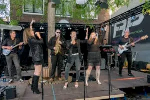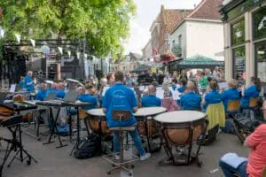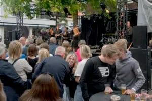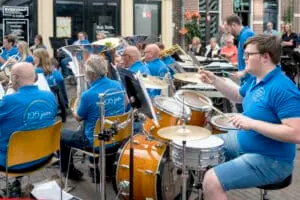 Fotograaf Kor van der Helm maakte de volgende fotoreportage van het openluchtconcert van Ons Genoegen op 22 juni. Het orkest trad op met de coverband UpTown bij Eetcafé De Kruusing. De complete kruising was afgezet voor orkest en voor de luisteraars.