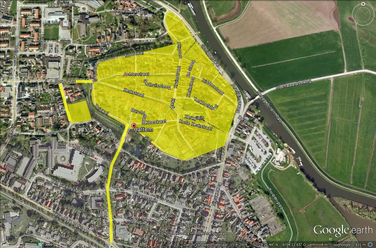 - • Dorpsweg voorbij de kruising met Kleine Gracht en Grote Gracht (voor de brug);