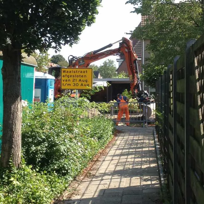 In de Waalstraat ter hoogte van de speeltuin zijn de werkzaamheden gestart om een verhoogd plateau in het wegdek aan te brengen. De Waalstraat is daarom ter plaatse afgesloten voor alle verkeer. Hierdoor zijn ook de aansluitingen van de Elskamp en Ruytershoeve bij de Waalstraat afgesloten.